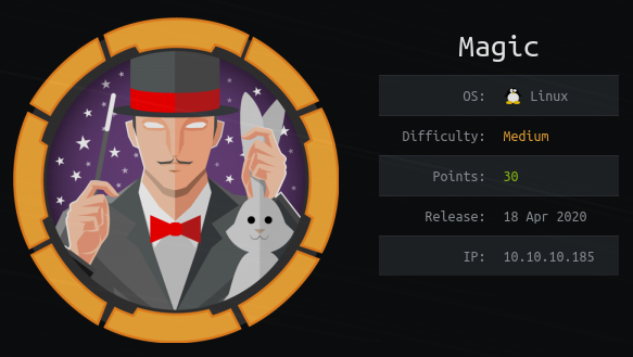 Magic is a medium-rated HackTheBox machine which involved taking advantage of a PHP insecure upload vulnerability to upload a web shell, forwarding a local port to gain access to the MySQL instance running on localhost, using plaintext credentials found in the PHP source code, and finally elevating privileges to root with path hijacking and a SUID binary.